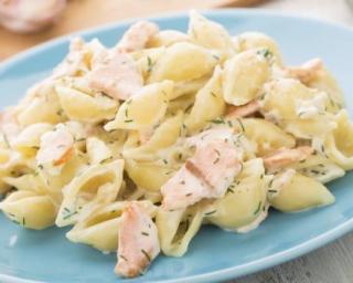 Dans une casserole faire cuire les pâtes, Lorsque cela est fait, prendre la poêle et y mettre la crème fraîche, mettre le tout sur feu, Puis incorporer le saumon en petits morceaux, puis ajouter les pâtes, Laisser mijoter le tout 20 min environ.