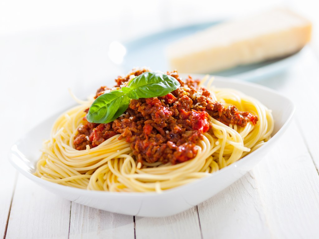 Dans une première casserole faire bouillir l'eau et y faire cuire les spaghettis, Pendant ce temps, dans la seconde casserole mettre la sauce et la viande hachée et laisser mijoter à feu doux, Quand les pâtes son prêtes, égoutter les, Prendre une assiette, mettre une portion de pâte, puis de sauce bolognaise.